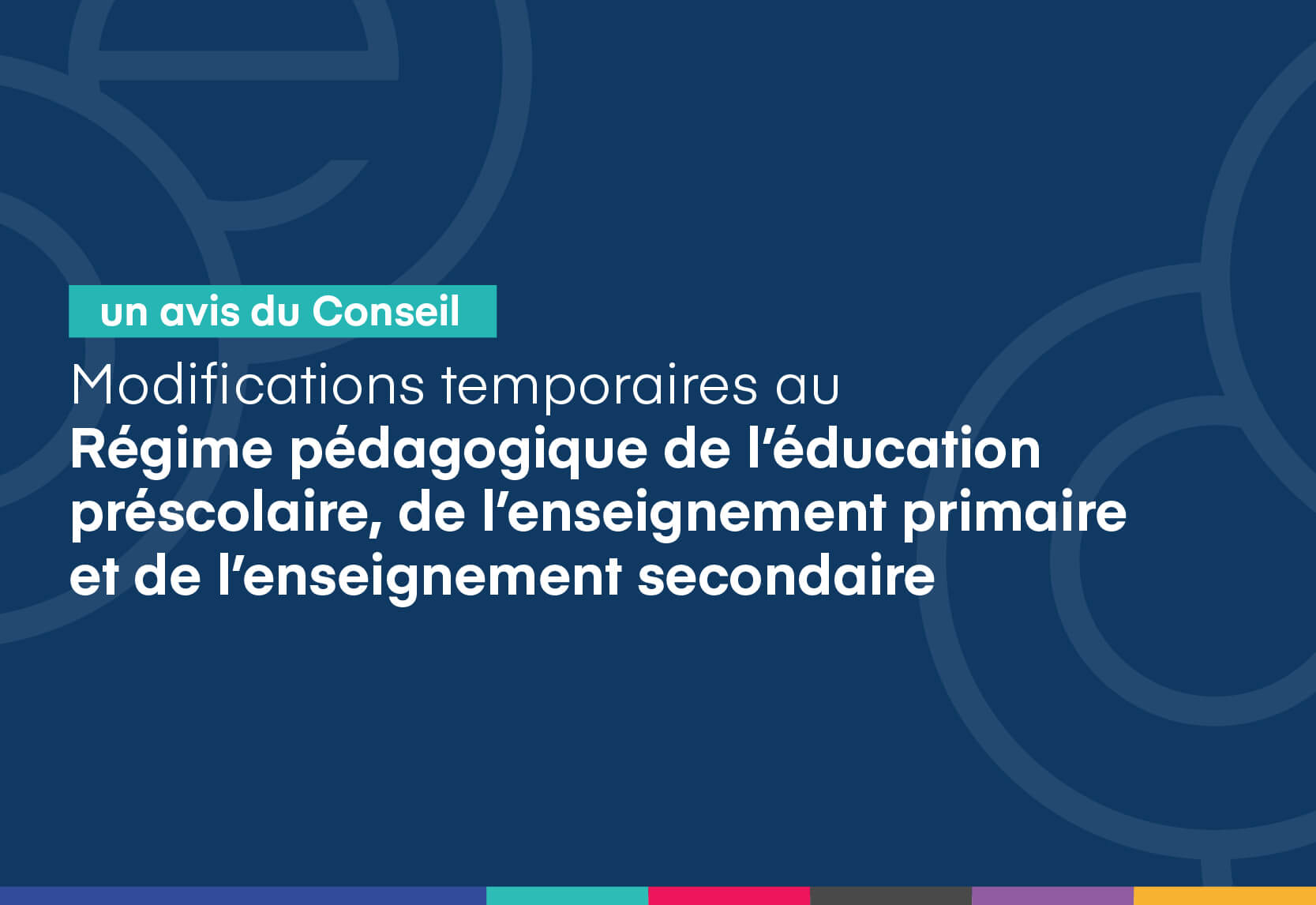 Modifications temporaires au Régime pédagogique de l’éducation préscolaire, de l’enseignement primaire et de l’enseignement secondaire
