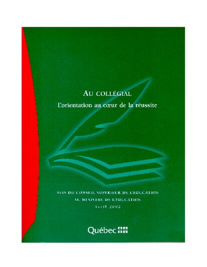 Comment citer cet ouvrage : Conseil supérieur de l’éducation (2002). Au collégial : l’orientation au cœur de la réussite, Sainte-Foy, Le Conseil, 126 p.