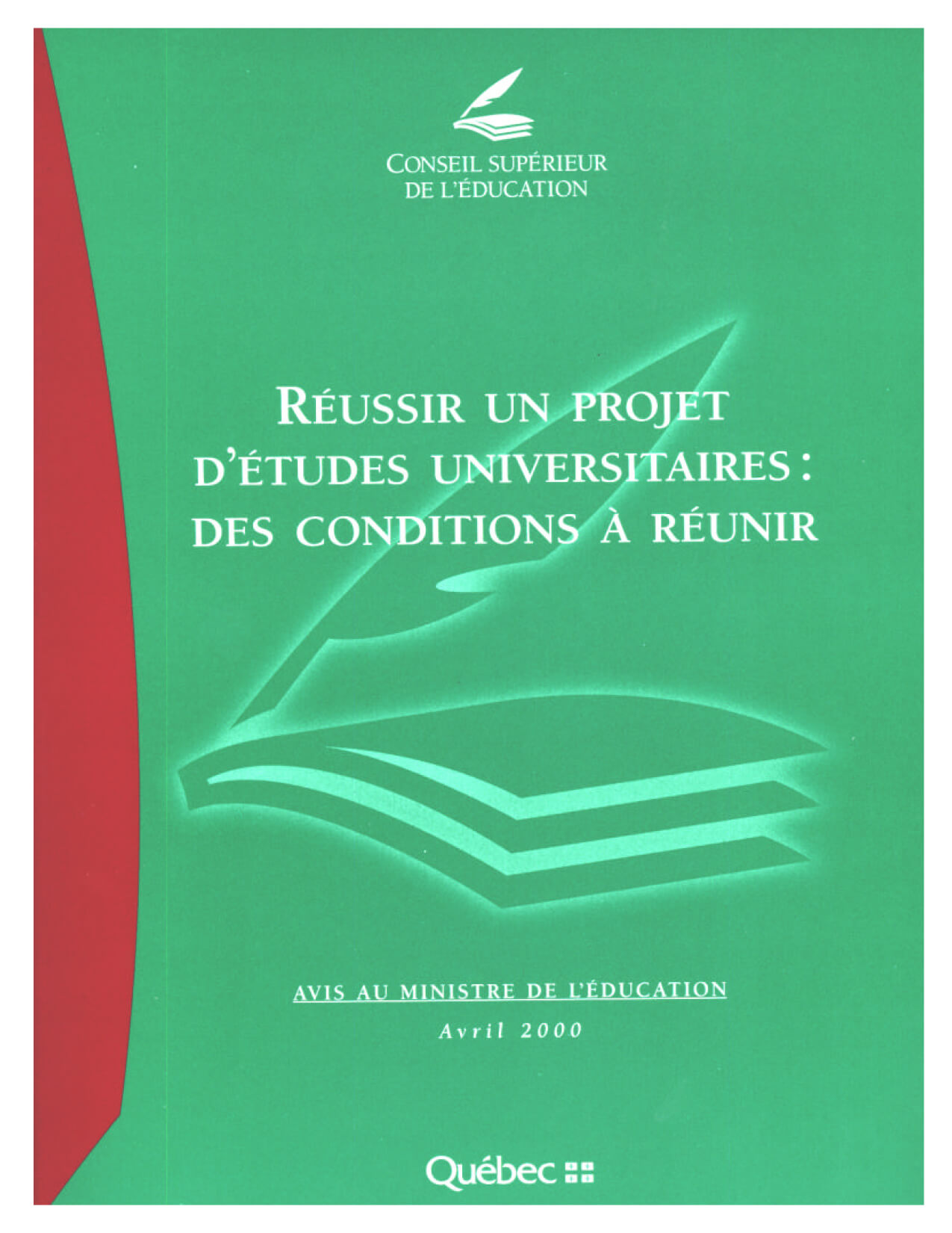 Mots-clés : réussite universitaire, diplomation, mission de l’université, avis, Conseil supérieur de l’éducation, 2000